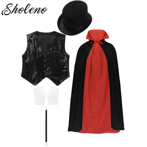 תחפושת קוסם לילדים ערכת צעצועים לילדים לבנים ולבנות מעיל חגורה כובע קסמים כפפות להופעות קסם