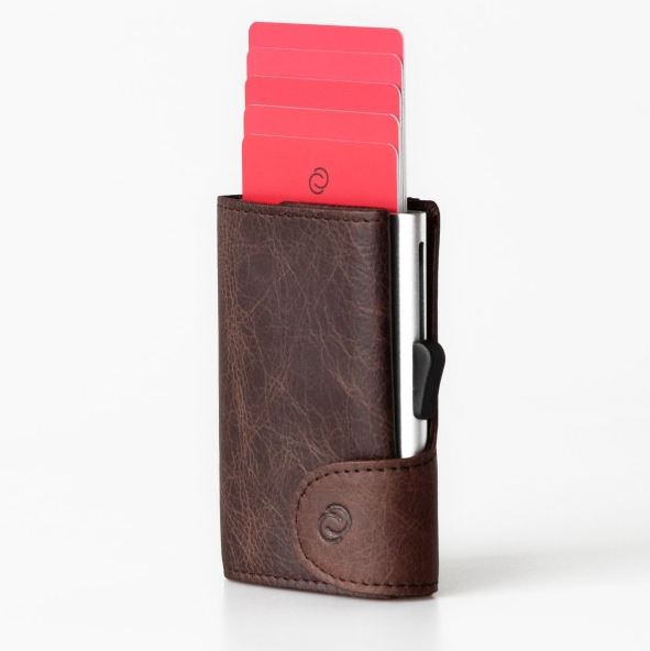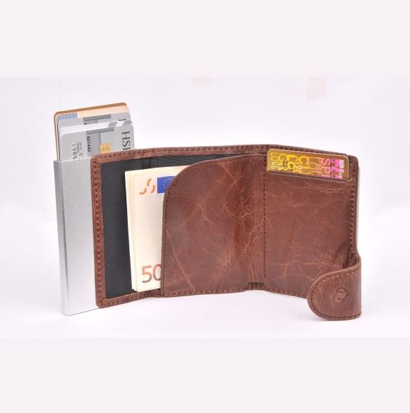 ארנק אלומיניום בשילוב עור עם תא למטבעות – חום