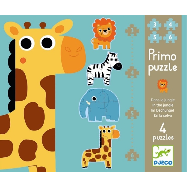 מכיל 4 פאזלים בצורות של אריה, זברה,פיל וג'ירפה, עם מספר חלקים שונה בכל פאזל.