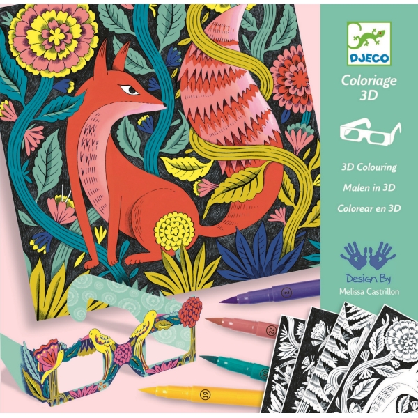 הערכה כוללת 4 תמונות ליצירה, משקפי תלת מימד וכמובן את הטושים.