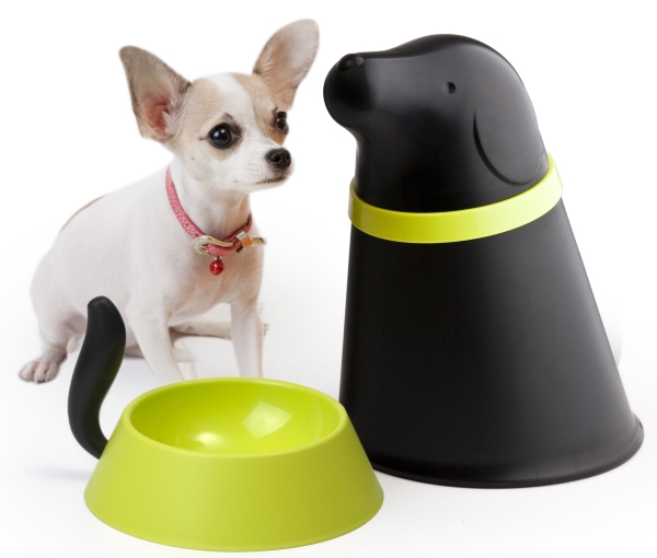 מעליה יושב גוף הכלב אשר משמש כמיכל אחסון למזון הכלב.