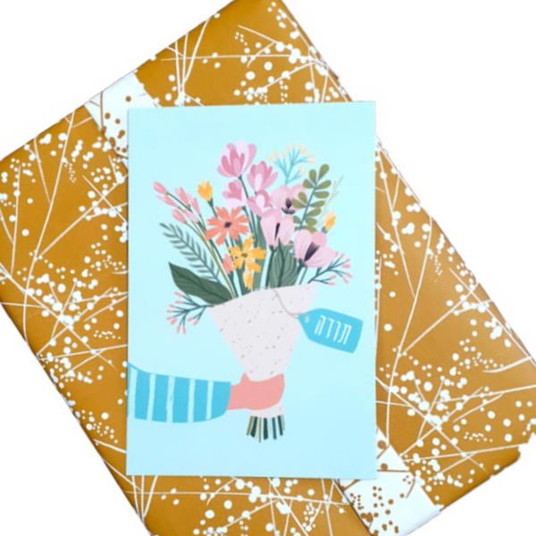 כרטיס ברכה מעוצב עם הכיתוב "תודה"
