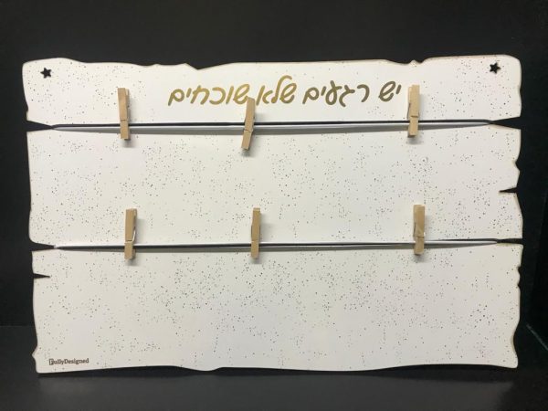 לוח עץ עם שני חבלים ואטבים לתליית תמונות, תזכורות או כל דבר אחר שתרצו.