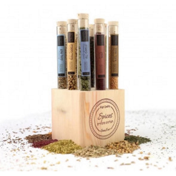 בתוכו 8 מבחנות עם תבלינים מובחרים.