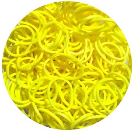 מארז של 600 גומיות מקוריות בצבע צהוב ו 24 סוגרים שקופים לערכת הריינבו לום.