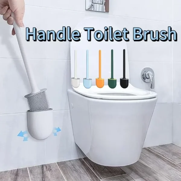מברשת שירותים סיליקון עם מחזיק ראש שטוח, שערות רכות, מברשות ניקוי עם תושבת מהירה לייבוש, כלי לחדר האמבטיה