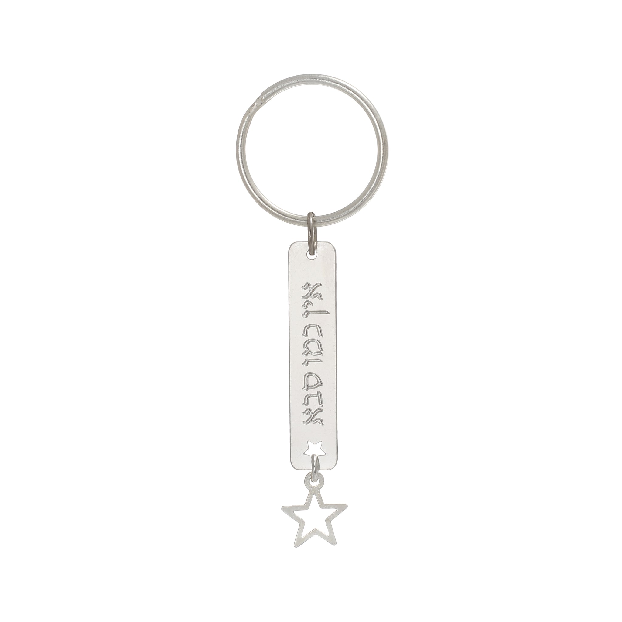 מחזיק המפתחות מגיע ארוז עם גלויה ויש מקום לכתוב ברכה אישית.