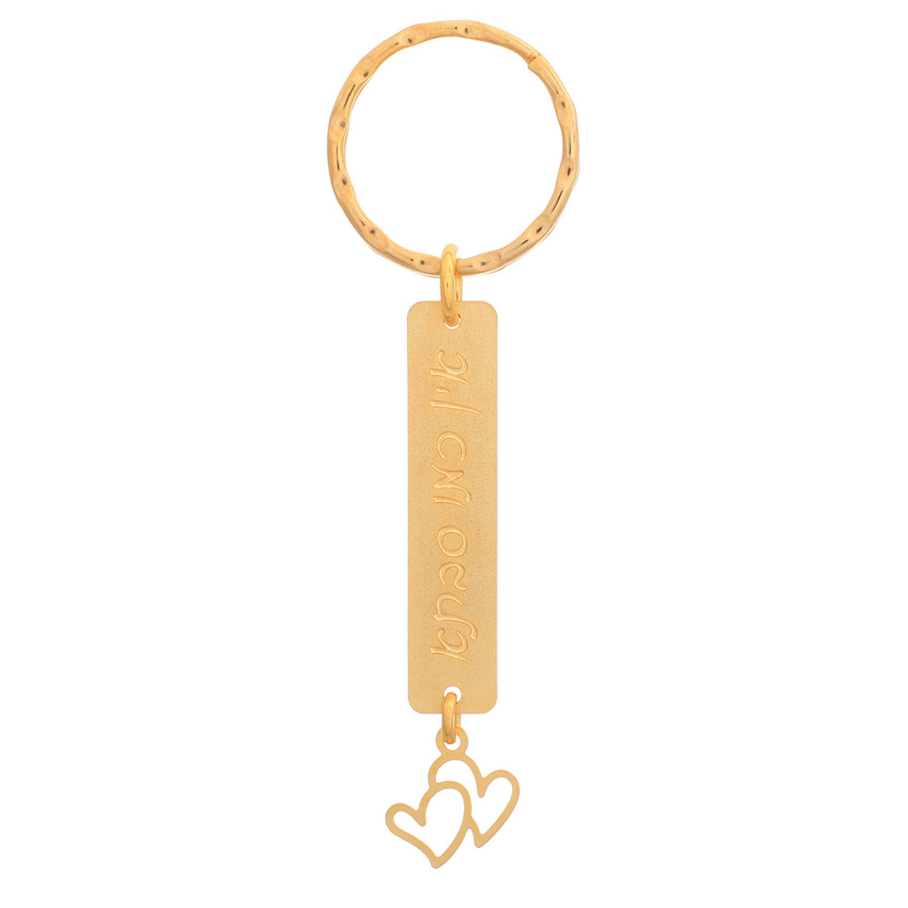 מחזיק המפתחות מגיע ארוז עם גלויה ויש מקום לכתוב ברכה אישית.