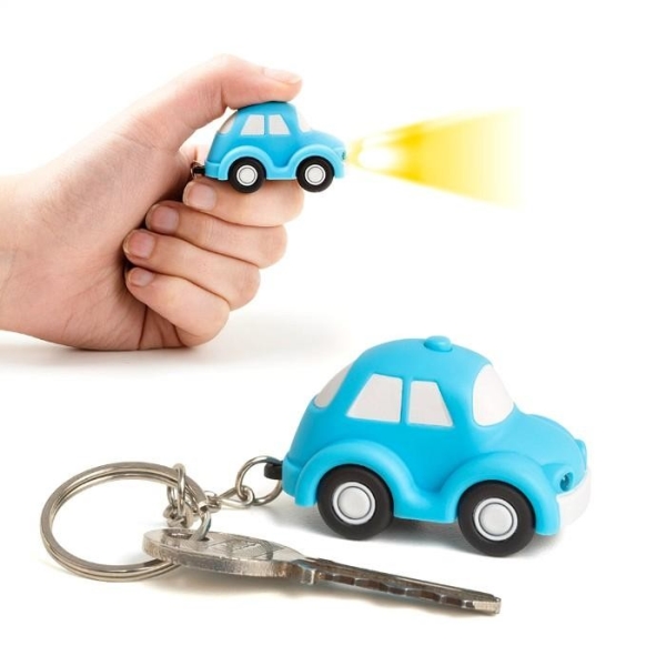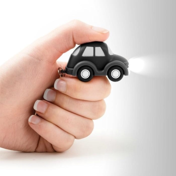 מחזיק מפתחות בצורת מכונית מדליקה עם פנס מאיר.