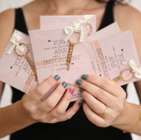 מחזיק מפתחות מעוצב עם מסר.
