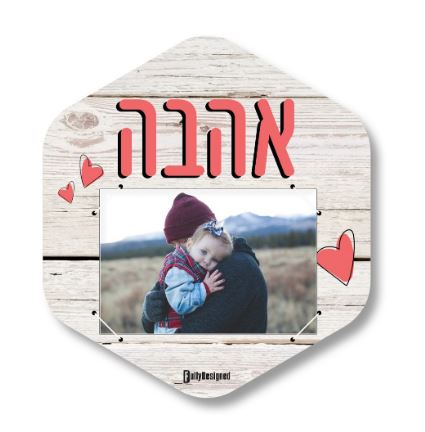 מסגרת משושה מעוצבת עם המילה "אהבה" לתלייה או הדבקה. מתנה מושלמת ליום האהבה או כמתנה למי שאתם באמת אוהבים! בוחרים תמונה שאתם ממש אוהבים, מכניסים למסגרת ותולים. * שינויים קטנים עלולים להופיע בגומיות או בסוג המתלה.
