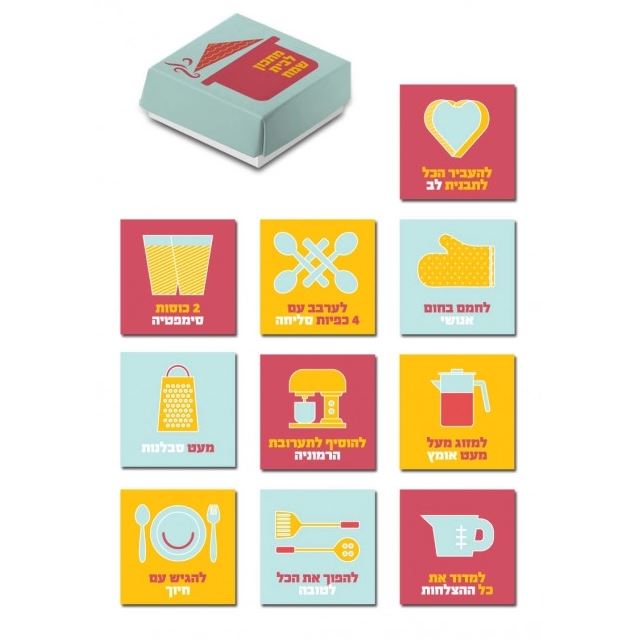 ערכת מגנטים "מתכון לבית שמח" הכוללת 10 מגנטים עם "מרכיבים" לבית רגוע ושמח,