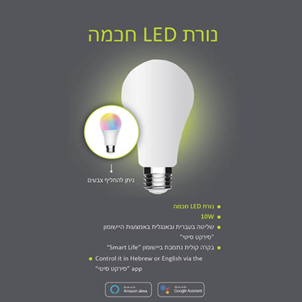 נורת לד צבעונית מסדרת מוצרים לבית חכם