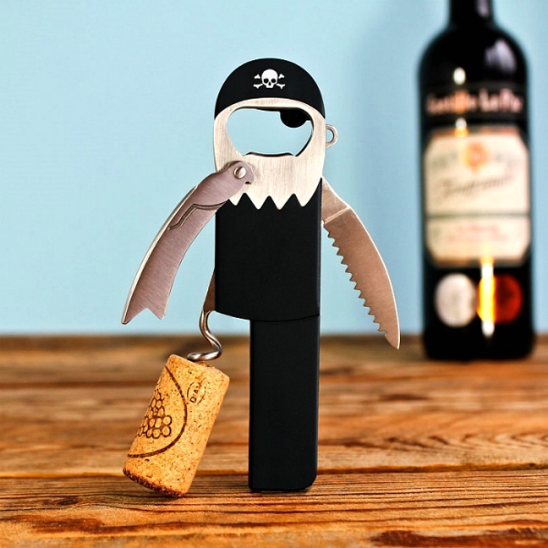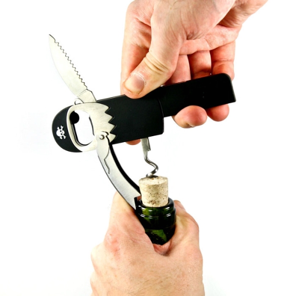 כולל חולץ פקקים נח הנעזר בידית, פותחן בקבוקים' וסכין לחיתוך הרדיד העוטף את פקק היין