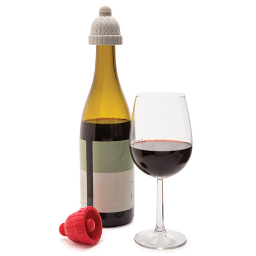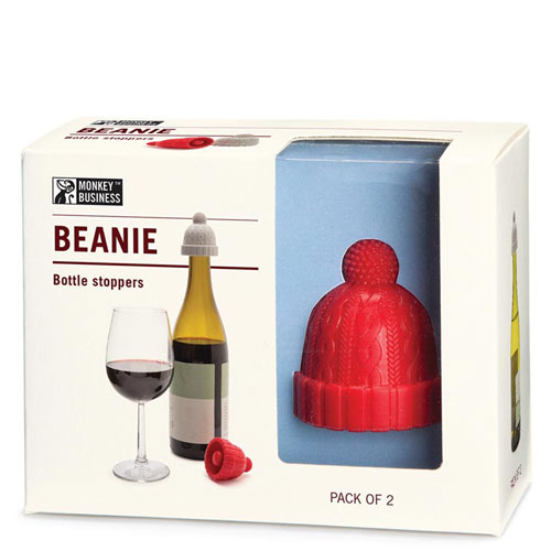 BEANIE זוג פקקים לבקבוקי יין – דגם כובע צמר אפור בהיר ואדום