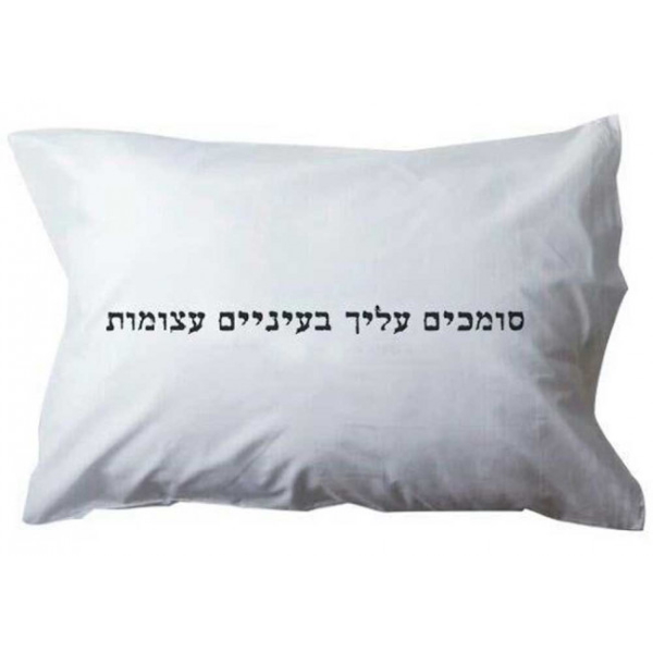 ציפית מפנקת לכרית בעיצוב רך ובצבע לבן עם כיתוב "סומכים עליך בעיניים עצומות".