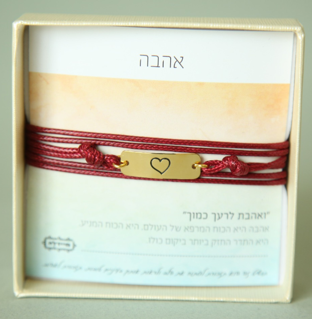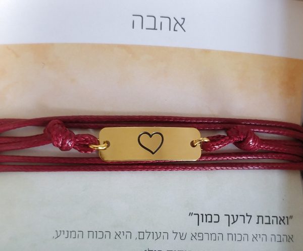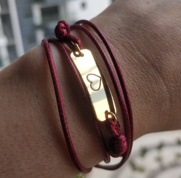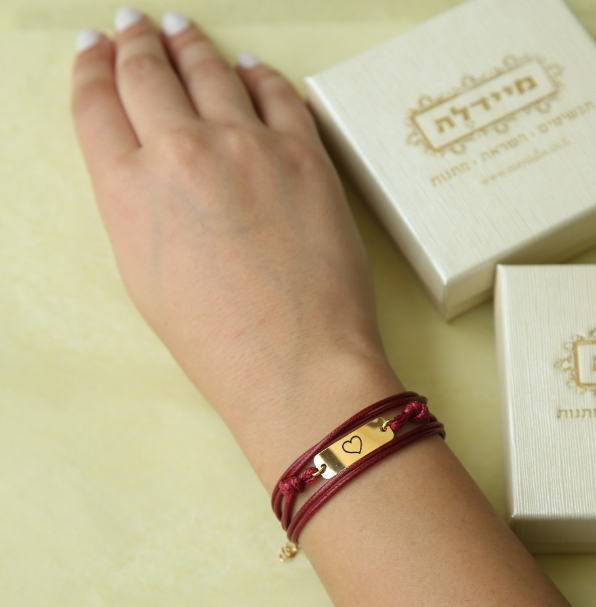 צמיד שרוך המתלפף סביב פרק כף היד עם דיסקית וחריטה בצורת לב