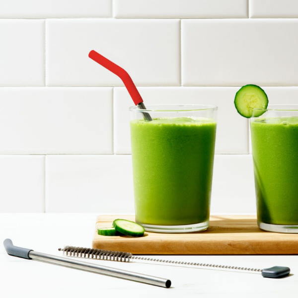 סט 4 קשים רב פעמיים מנירוסטה ידידותי לסביבה,עם פיה מסיליקון גמיש.