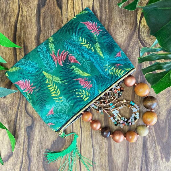 תיק איפור בסגנון וינטג' בגווני ירוק וורוד רכים ומקסימים.
