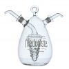 בקבוק זכוכית מרשים המשלב בתוכו שני מיכלים, לשמן וחומץ.