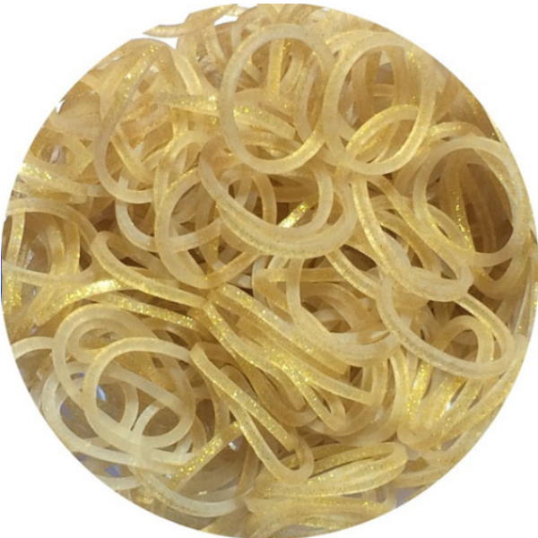 מארז של 300גומיות מקוריות בצבע זהב מנצנץ 12סוגרים שקופים לערכת הריינבו לום.
