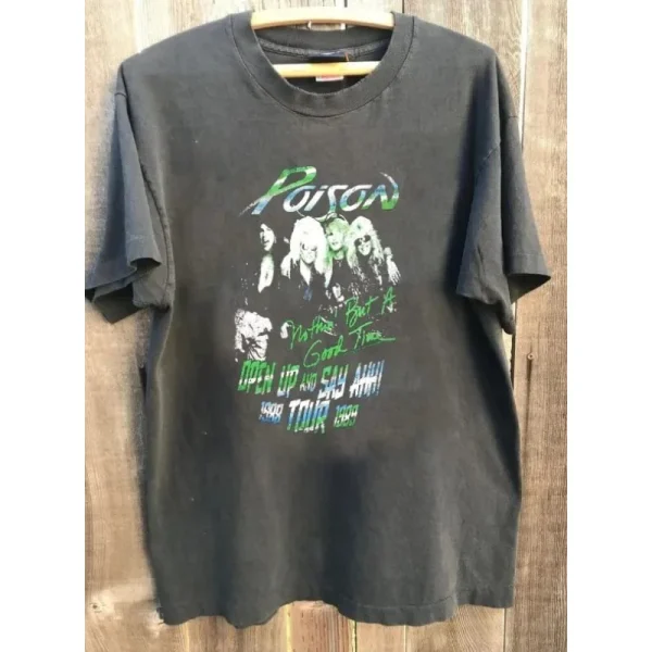 חולצת Poison Band משנת 1988 בעיצוב נדיר, חולצה בצבע פחם, חולצה יוניסקס לגברים ונשים, חולצות טי גרפיות בסגנון הראג'וקו