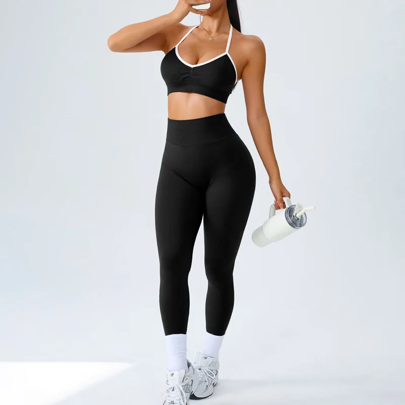 דף הבית » חנות » חליפת יוגה מתיחה TEVEO LOGO עם כרית חזה, חזיית ריצה ללא שרוולים ומכנסי כושר