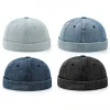 כובע דוקר ג'ינס אופנתי ללא שוליים צבע אחיד כובע סיילור כובע ביניים לגברים ונשים כובע דלי מתכוונן כובע אבא