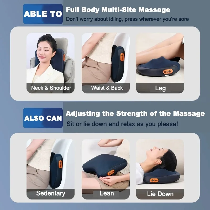 כרית מסאג' לנובו עם אור אדום לחימום כל הגוף, מסאג'ר צוואר, גב וראש רב תכליתי לשימוש ברכב ובבית, קופסת מתנה