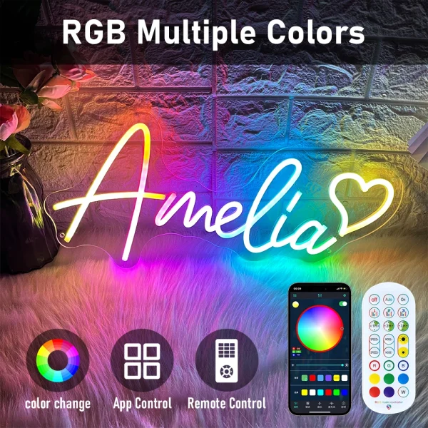 לוחות ניאון מותאמים אישית בצבעים מרובים עם אפשרות לכוונון שמות ניאון לחדר השינה ולקישוט חתונה, תאורת ניאון מותאמת אישית בצבעים RGB