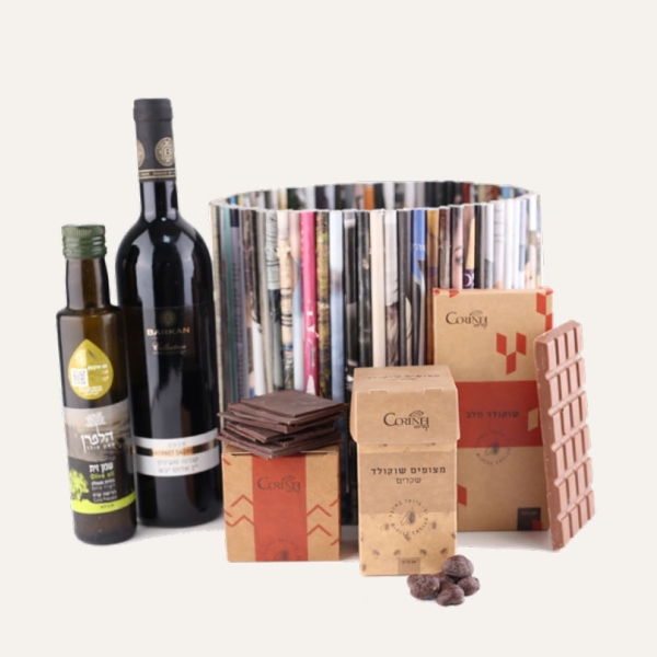בקבוק יין 750 מ"ל, בקבוק שמן זית 250 מ"ל,
