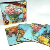 ארבע תחתיות כוסות המציגות מפות וינטג' צבעוניות מהמאה ה-19.