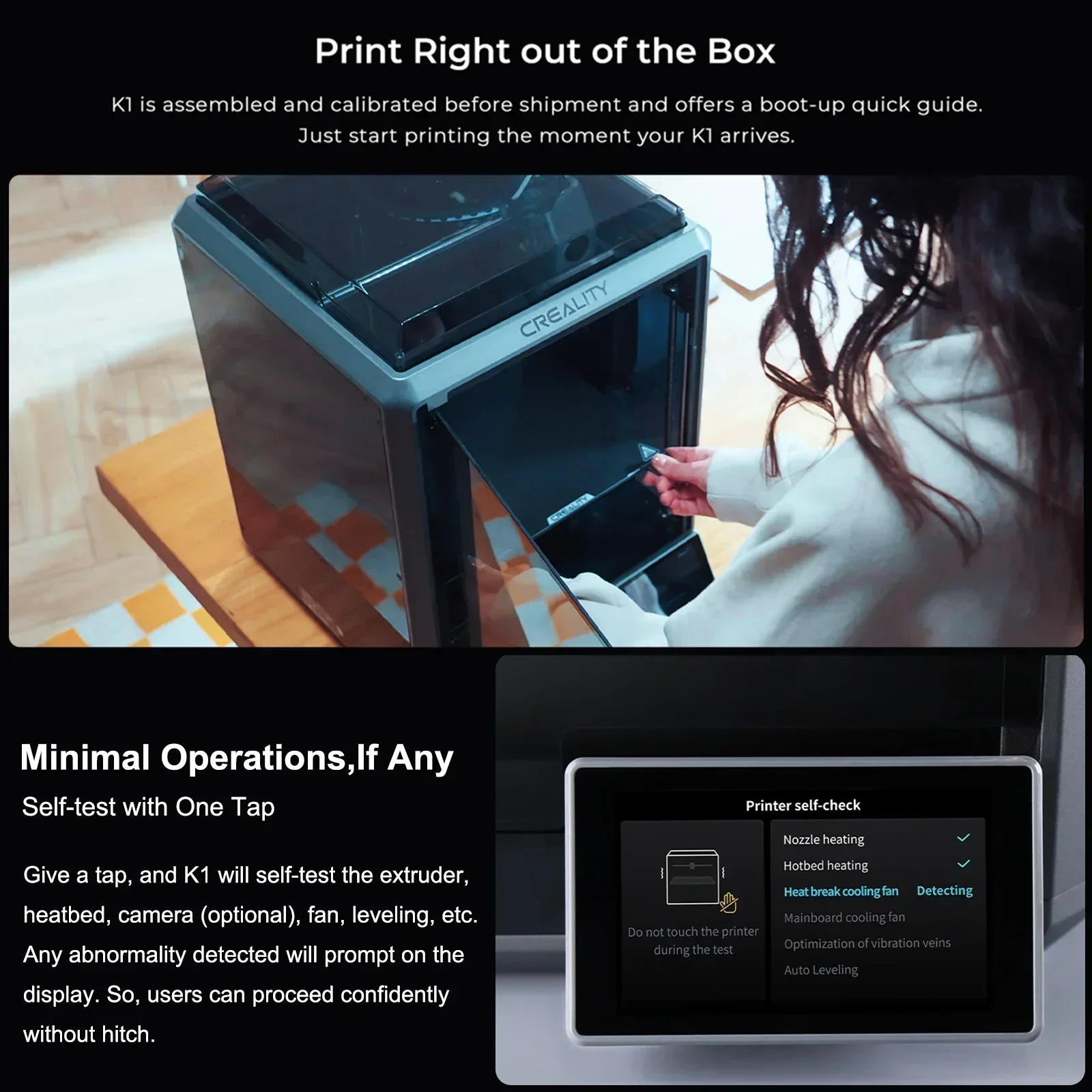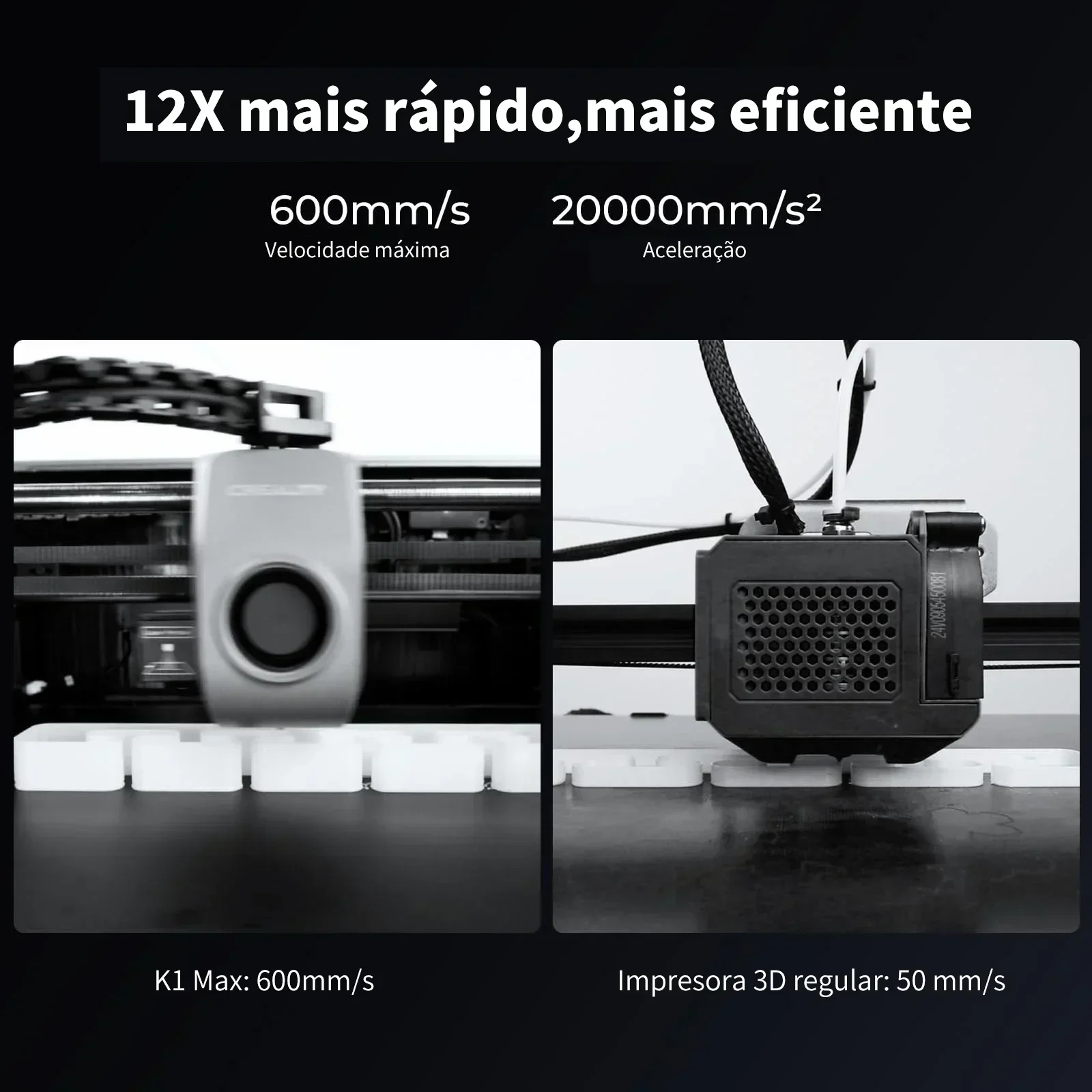 מדפסות תלת-ממד Creality K1 Max במהירות גבוהה של 600mm/s עם שני הילוכים והפעלה ישירה עם מסך מגע בצבע 4.3" להדפסה ישירה