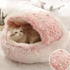 מיטת מחמד קטיפה רכה עם מיטת חתול עגולה מזרון לחיות מחמד חתול חם כלב 2 ב 1 מערת קן שינה לכלבים קטנים