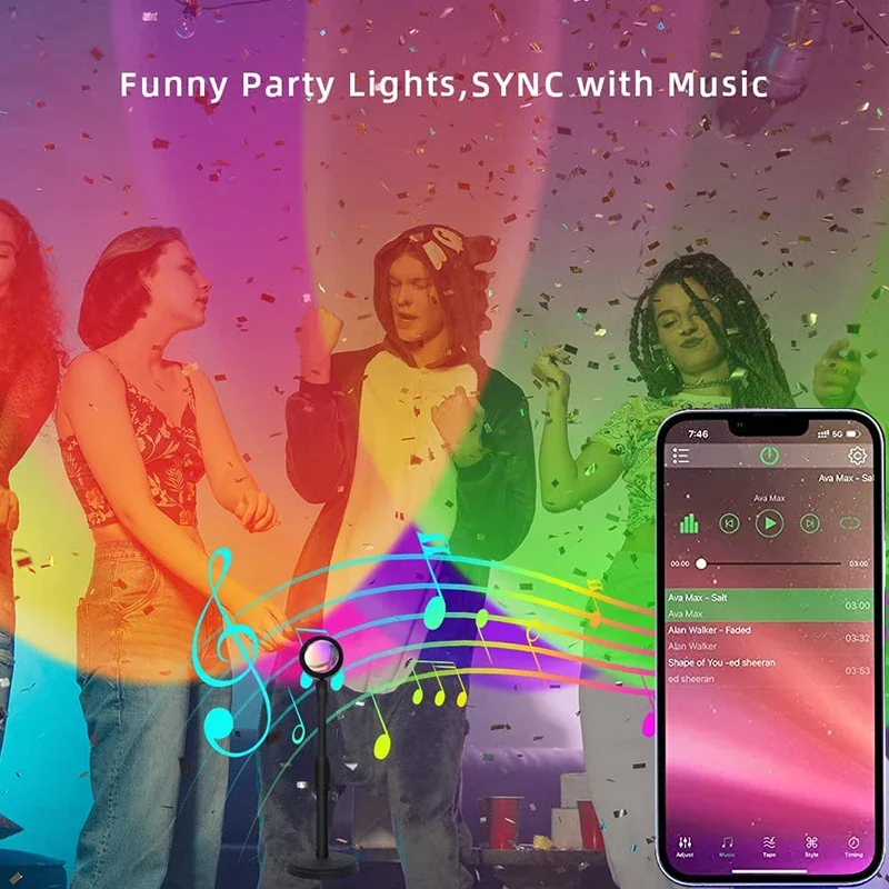 מנורת שקיעה צבעונית שינוי צבע שינוי bluetooth שליטה סינכרון מוסיקה עבור רשת שידור חדר שינה בית עיצוב מנורות קשת