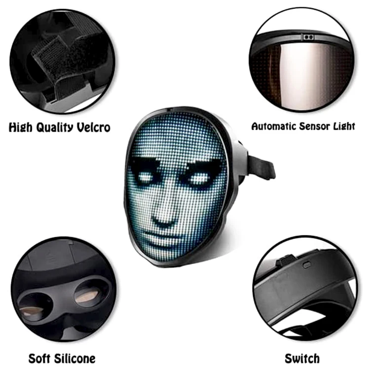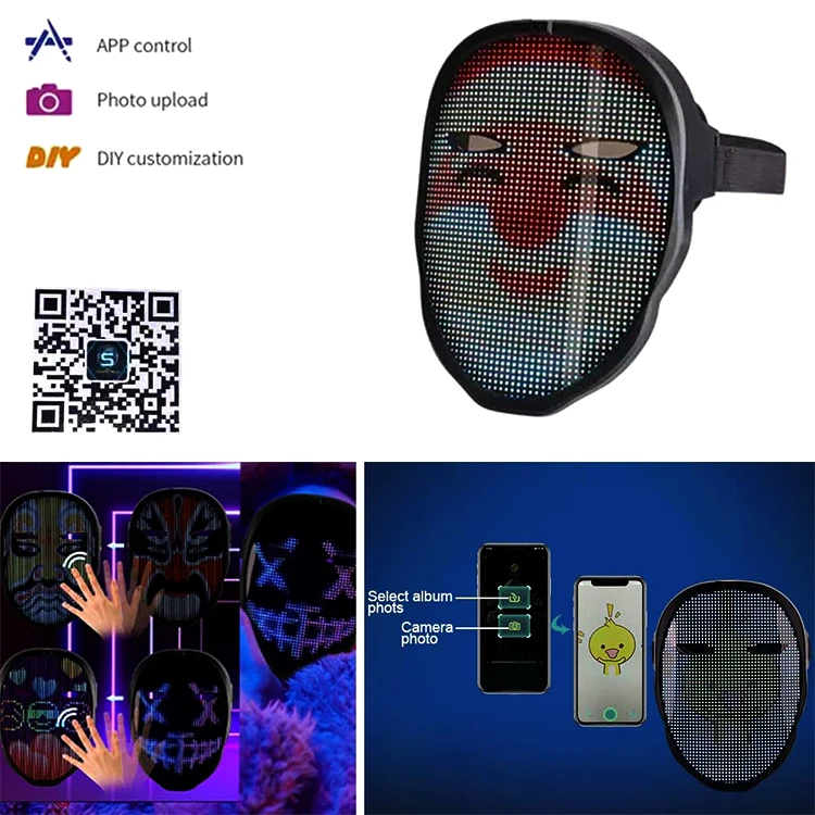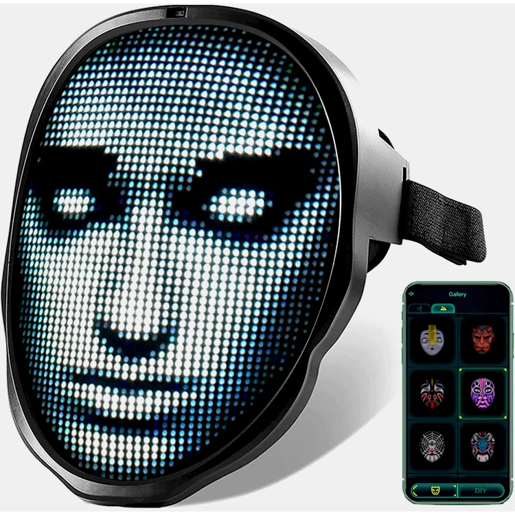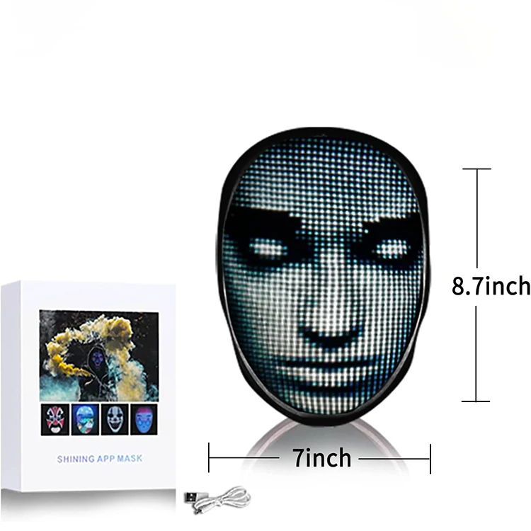 מסיכת פנים מפלסטיק PVC עם תאורת LED, בקרה באמצעות אפליקציה, מסיכה זוהרת לתכנות לחג ההלווין, תחפושות, מסיכות מסכרדה וקוספליי