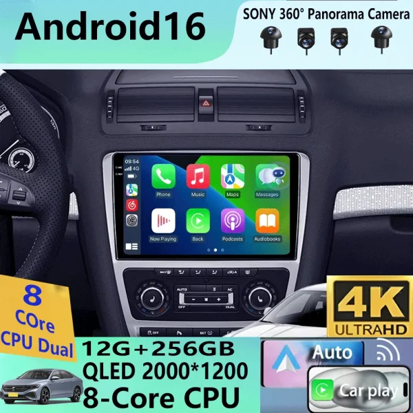 מערכת רדיו לרכב אנדרואיד 16 עבור סקודה אוקטביה 2 A5 2008 – 2013, נגן מולטימדיה וידאו, ניווט GPS, 2 דין, קארפליי, סטריאו, DVD, רמקול
