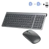 מקלדת אלחוטית Bluetooth 5.0 ו-2.4G בצבע אפור עם עכבר, מקלדת אלחוטית נטענת בגודל מלא למחשב נייד