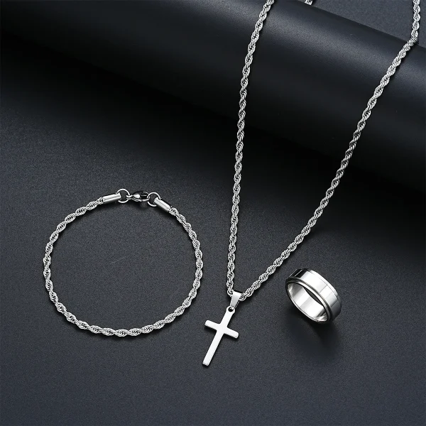 דף הבית » חנות » נירוסטה סט תכשיטים פשוט סט עבור גברים נשים בצבע כסף צלב תליון שרשרת שרשרת שרשרת צמידים טבעת מתנות