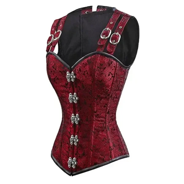 סטימפאנק אדום שחור מחוך מחוך העליון רצועות הכתף overbasquest busier נשים וינטג jacquard celet פיראט basques תחפושת
