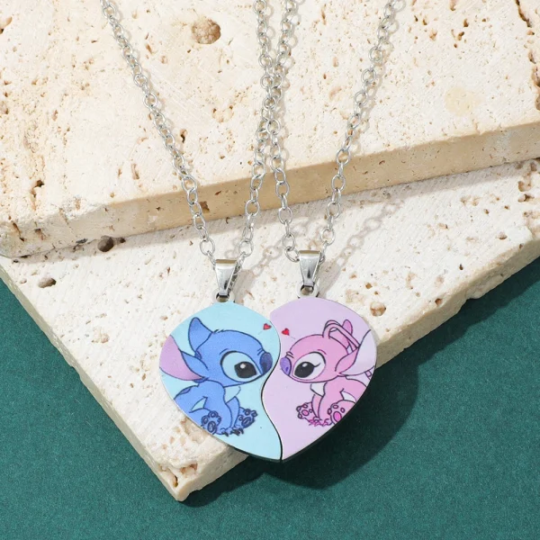דף הבית » חנות » סט שרשרת זוגית Stitch & Angel מפלדת אל-חלד עם תליון לב מתאים לתכשיטי Y2K UV מתנה לחברים הכי טובים וזוגות