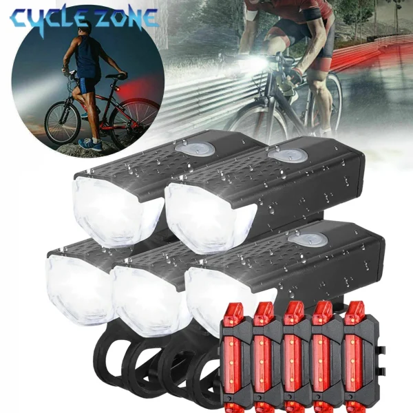 סט תאורה קדמית אחורית לאופניים LED נטענת MTB תאורת ראש לאופני הרים אדומה אזהרה אחורית אביזרים לרכיבה בלילה