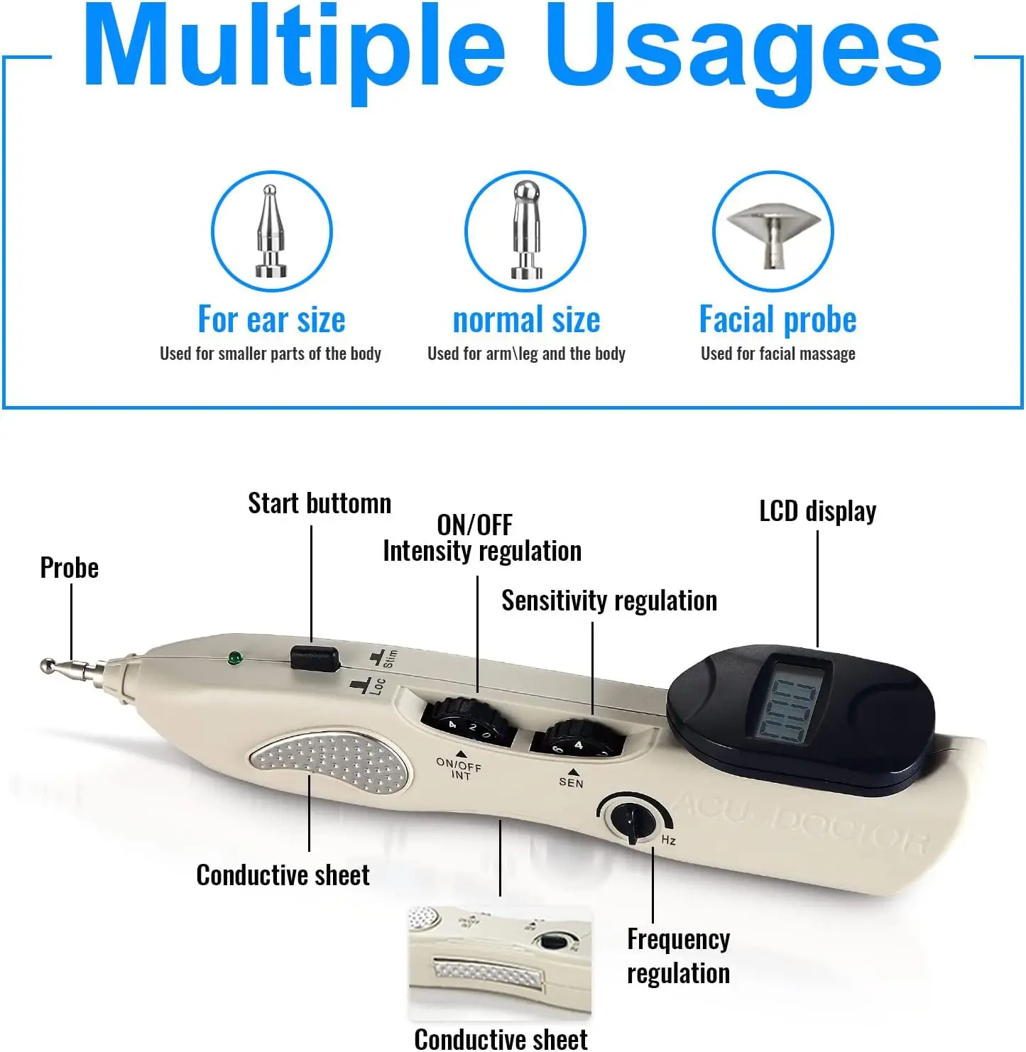 עט אקופונקטורה אלקטרוני עט מרידיאן מציאת נקודות אקופונקטורה באופן אוטומטי עם 3 ראשי מסאג' נטענים