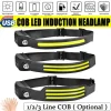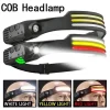 פנסי ראש LED עם 1/2/3 חוטים ו-5 מצבי תאורה, פנסי COB עם חיישן בהירות גבוהה, פנס חזק, טעינת USB