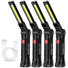 פנס נייד חדש COB LED עם טעינה באמצעות USB, מנורת עבודה מגנטית תלויה עם סוללה מובנית, פנס למחנאות
