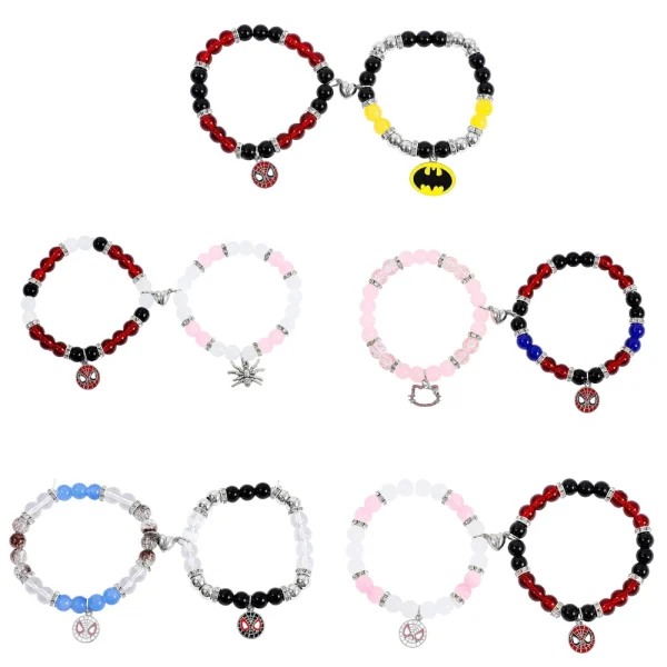 דף הבית » חנות » צמידי זוג ספיידרמן גותיים עם לב מגנטי, סט מתאים לתכשיטים אסתטיים כהים לזוגות ולזוגות