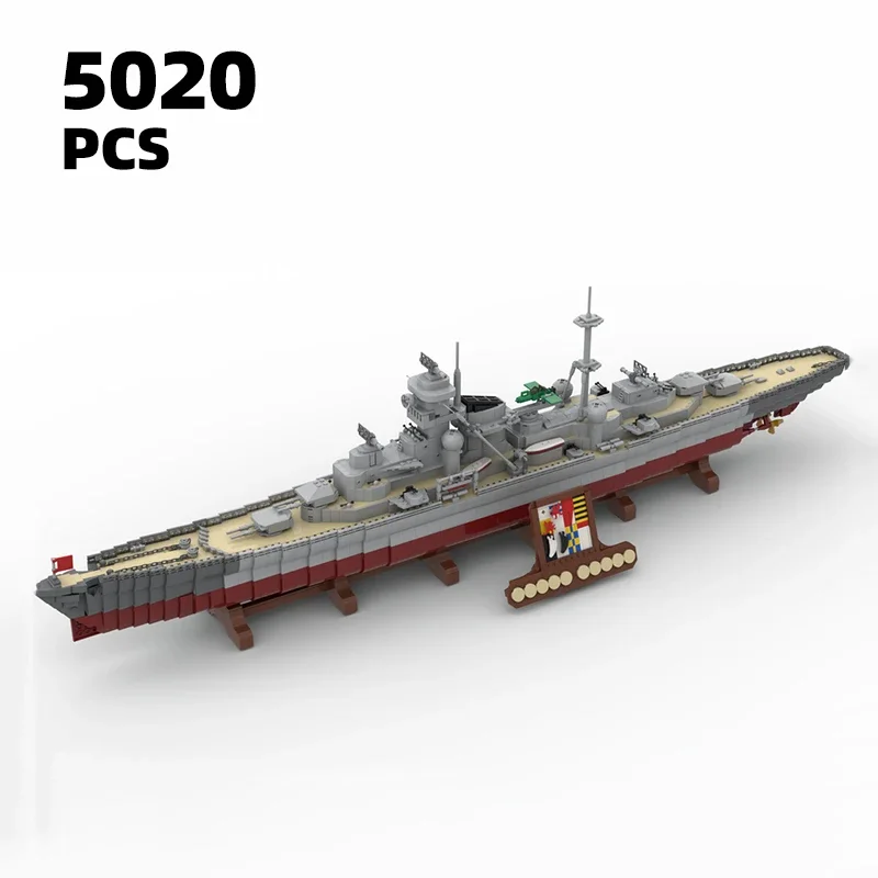 קיט בניית בלוקים צבאיים MOC Prinz Eugen Battleship Kit דגם ספינת מלחמה צבאית נשק צבאי זרועות קרוזר רכב