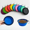 קערת אוכל ומים ניידת לכלבים מסיליקון נפתחת לטיולים בחוץ ולמחנאות עם קרבינר