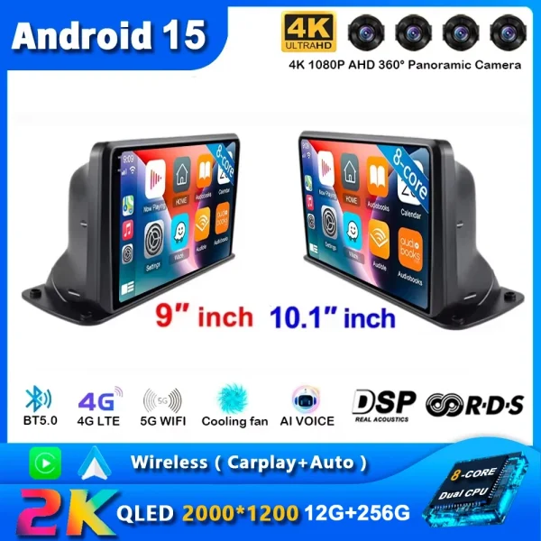 רדיו לרכב עם Carplay בגודל 9/10 אינץ', מערכת הפעלה אנדרואיד 15, ניווט מולטימדיה GPS, פאנל כלי נגינה אוניברסלי למשאית, 2 דין, אוטורדיו סטריאו DVD