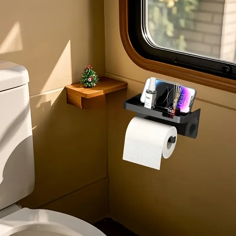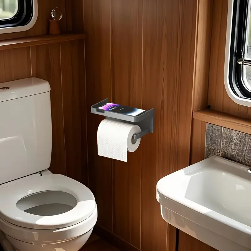 תושבת נייר טואלט לפנים של רכב, מתקן קיר לחדר האמבטיה, תושבת נייר טואלט לטלפון נייד, מדף למגבות לרכבת RV, קרוואן ומוטורהום